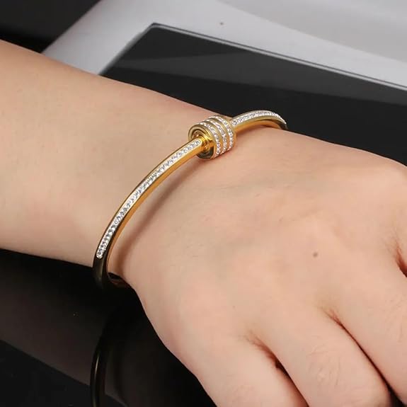 • Premium Quality – Handcrafted with 100% Stainless steel for long lasting, high quality cubic zircon has been perfectly set on the love bangle. 18K real gold plating will ensure a very long lasting brilliant finish that is nickel free, lead free and friendly to sensitive skin. Great choice for anniversary, engagement, party, meeting, dating, wedding, daily wear, etc